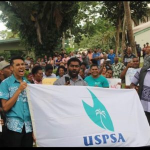 A “support good governance” protest organised by the University of the South Pacific Student Association today with the theme “wear blue” is now underway in a number of campuses around the region with the