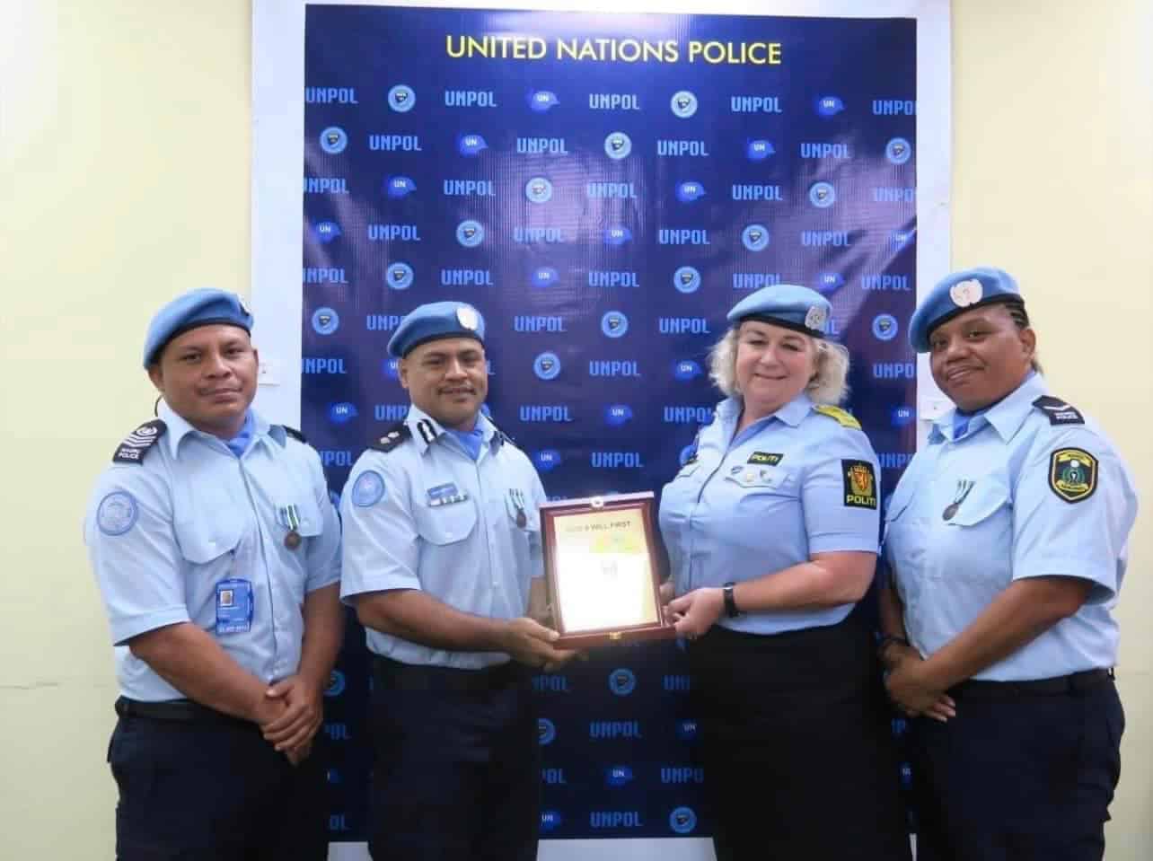Superintendent Imran Scotty, Senior Constable Jacaranda Akibwib and Sergeant Drusky Dabwadauw of the Nauru Police Force are the first Nauruans to be awarded the United Nations Mission in South Sudan (UNMISS) medal. The three officers are serving as peacekeepers within South Sudan.