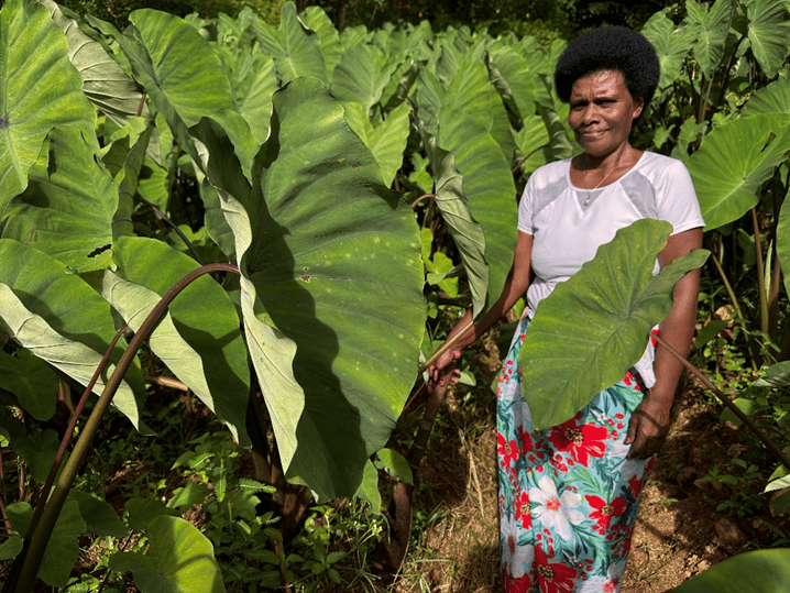 In Navunisole village in Fiji’s Tailevu Province, the wife-and-husband Elesi Mila and Aleveo Basaga farmed kava as a cash crop. They relied solely on wild forest ferns and taro leaves for fresh food. After attending a FFT training in the village in 2022, supported by the PHAMA Plus program, they transitioned to cultivating various vegetables, staggered their harvests, and established chicken and cattle farms. These diverse crops also reduced vulnerability to cyclones.