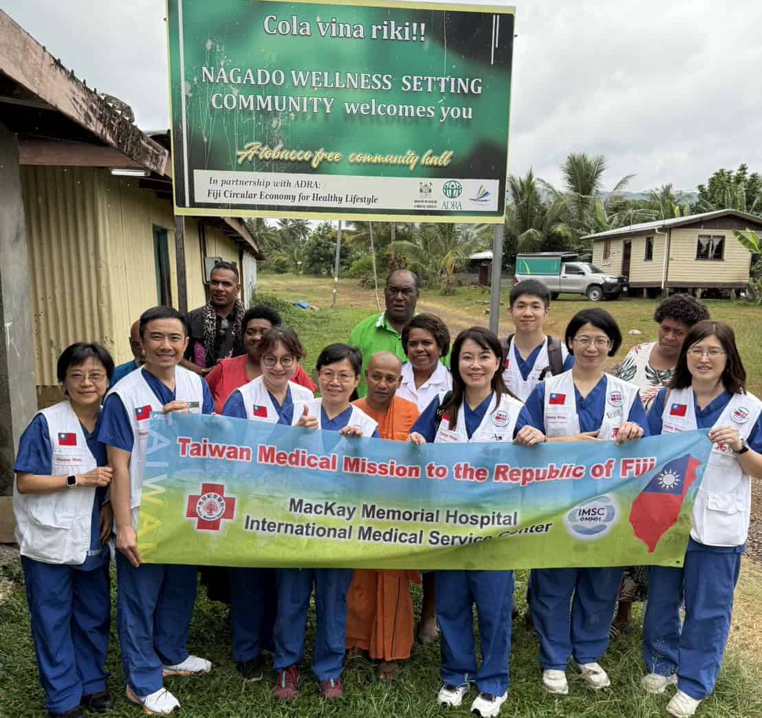 Taiwan Medical Misson team from Mackay Memorial Hospital with community members during their outreach in Nagado, Fiji, June 2025.