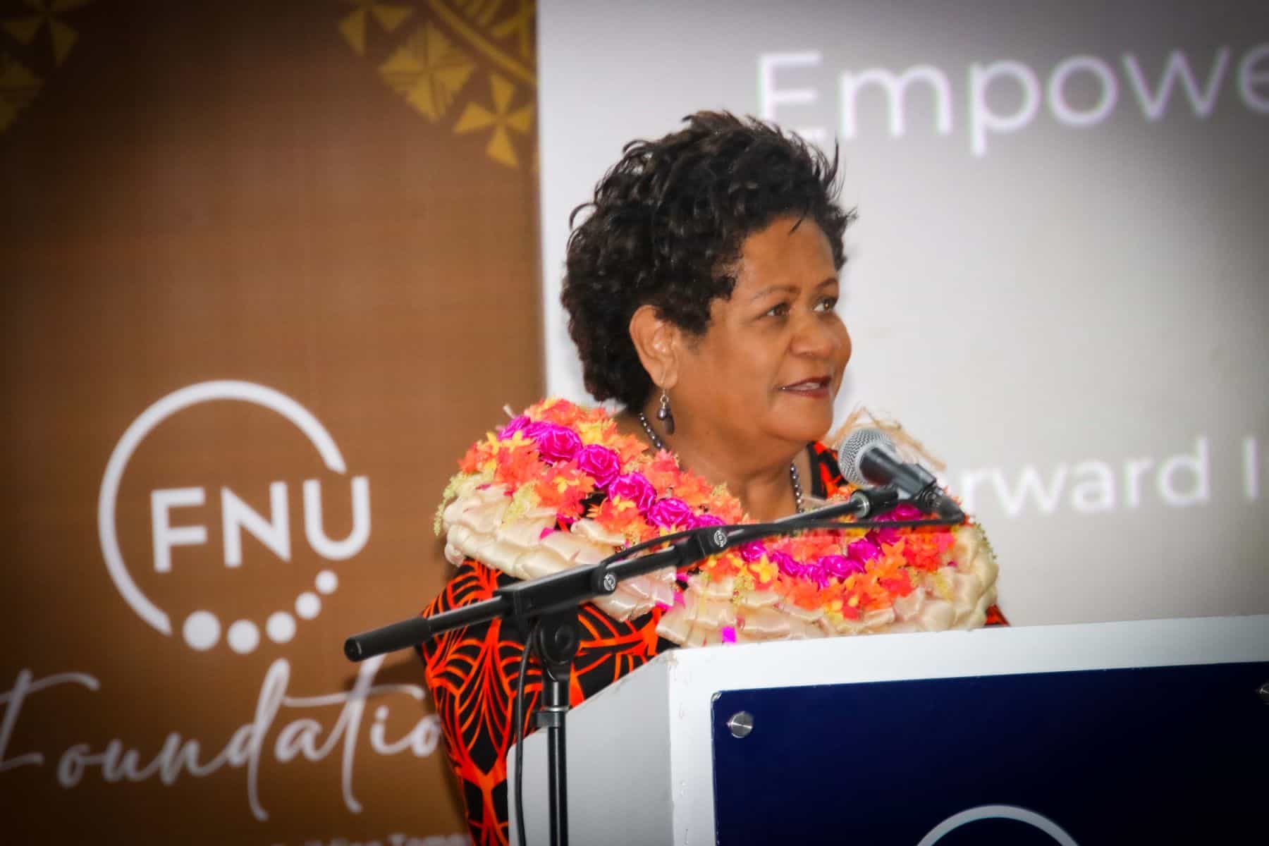 FNU Vice-Chancellor, Professor Unaisi Nabobo-Baba delivers her remarks at the FNU Foundation one year anniversary and Nasinu Hub launch. Image: FNU