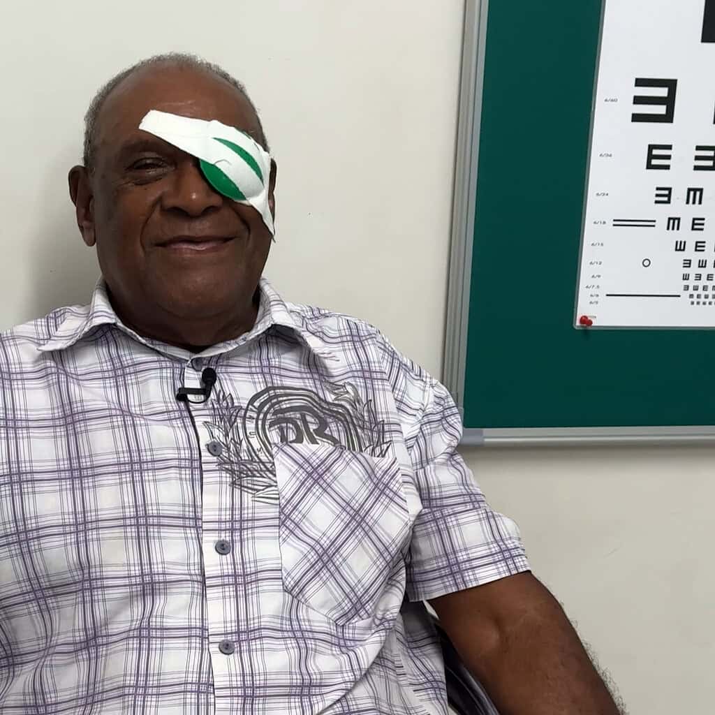 Getting treatment meant a long journey – a 12-hour boat trip to Honiara – with his granddaughter by his side. Alexandra received cataract surgery on his left eye and when the patch came off, his reaction said it all. Smiling and laughing, he looked around and said, “Wow, it’s so bright.” Then: “I think it is a happy day for me – I can see again, for a long time.”