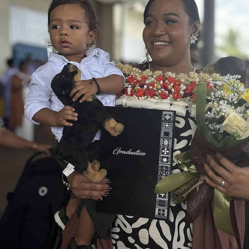 But life had more in store for Frances. In 2024, she married her long-time partner, national rugby player Tevita Ikanivere, and welcomed their son, Tevita Junior. Amid these joyful milestones, she remained deeply committed to her academic journey, which she described as rewarding, faith-filled and far from easy.