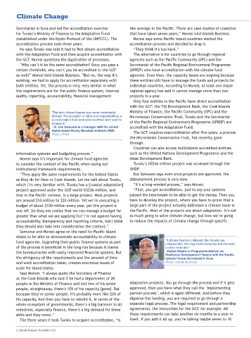 for Tuvalu’s Ministry of Finance to the Adaptation Fund that have taken seven years,” Moresi told Islands Business.