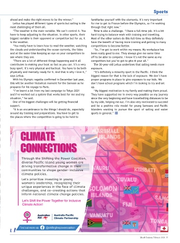 contributes to making your boat as fast as you can. It’s a very The 30-year-old Leilua underlines that sailing needs more