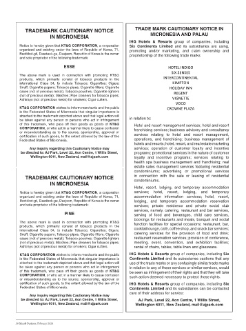 TRADE MARK CAUTIONARY NOTICE IN MICRONESIA AND PALAU