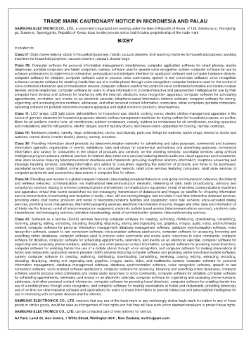 SAMSUNG ELECTRONICS CO., LTD. cautions that any use of the trade mark or any confusingly similar trade mark in relation to any of these