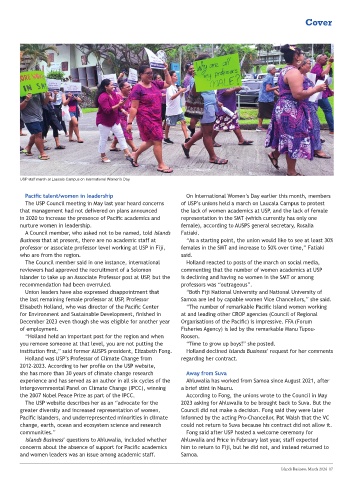 Islander to take up an Associate Professor post at USP, but the is declining and having no women in the SMT or among