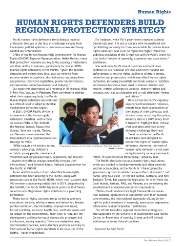 (human rights defenders) in the Pacific, “given the specific continue to use “colonial-era laws and heavy-handed law
