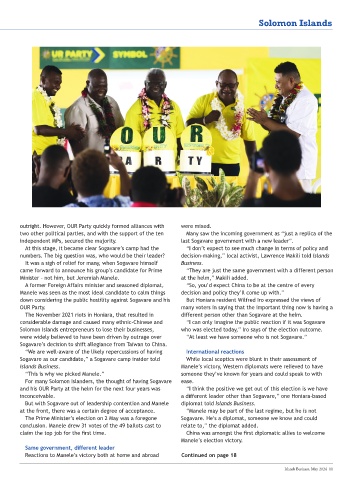 Islands Business. Manele’s victory, Western diplomats were relieved to have