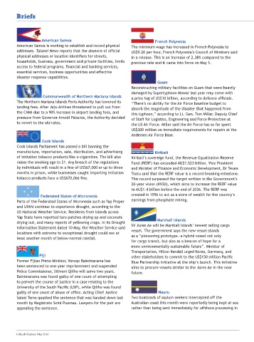 American Samoa is working to establish and record physical The minimum wage has increased in French Polynesia to
