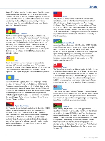 October 31, with eligible Australian, Pacific and Asian airlines Tuvalu expects to take delivery of its new inter-island vessel,