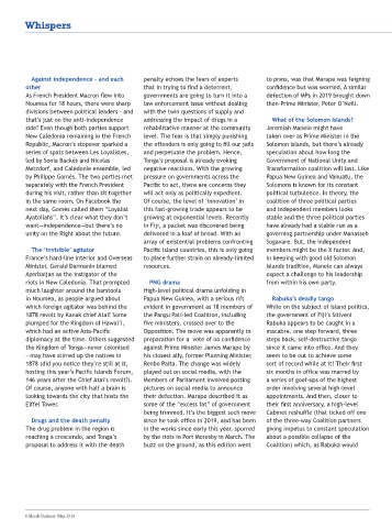 reaching a crescendo, and Tonga’s by the riots in Port Moresby in March. The about a possible collapse of the