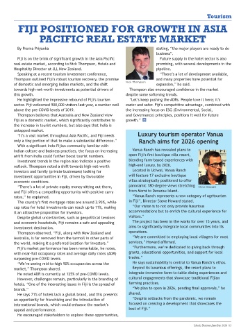 Thompson outlined Fiji’s robust tourism recovery, the promise and many properties have potential for