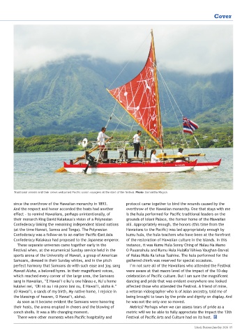 Traditional vessels and their crews welcomed Pacific ocean voyagers at the start of the festival. Photo: Samantha Magick