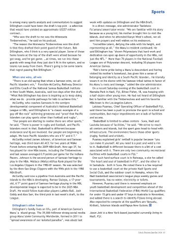 Dillingham, who I think is a very special player. Some of those said Dillingham has “shown Polynesians that hard work and