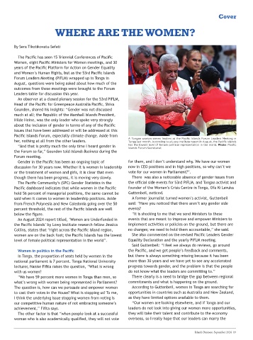 women are on the back foot; the Pacific Islands has the lowest She also commented on the revised Pacific Leaders Gender
