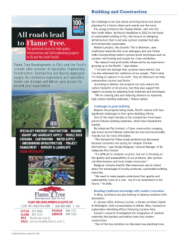 Flame Tree Developments is Fiji’s and the Pacific growing up in the Pacific,” says Nokise.