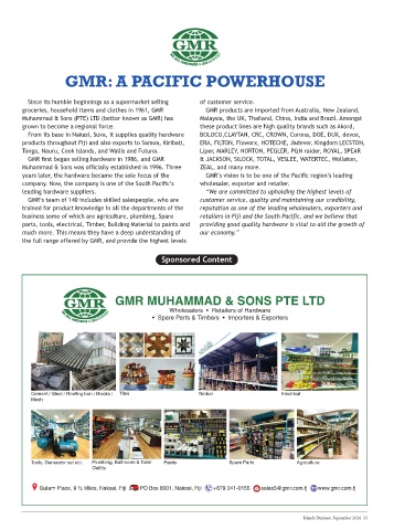 Gulam Place, 9 ½ Miles, Nakasi, Fiji PO Box 8001, Nakasi, Fiji +679 341-0155 sales5@gmr.com.fj www.gmr.com.fj