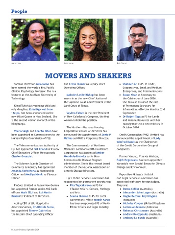 Samoan Professor Julia Ioane has and Frank Palmer as Deputy Chief ● Shaheen Ali as PS of Trade,