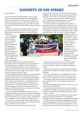 The President of one Strike action at the University of the South Pacific outcome shared with