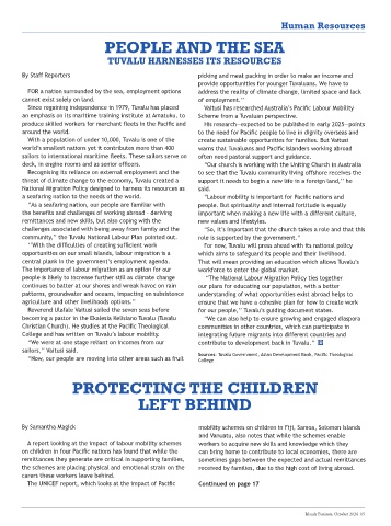 a seafaring nation to the needs of the world. “Labour mobility is important for Pacific nations and
