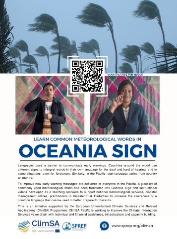 commonly used meteorological terms has been translated into Oceania Sign and instructional