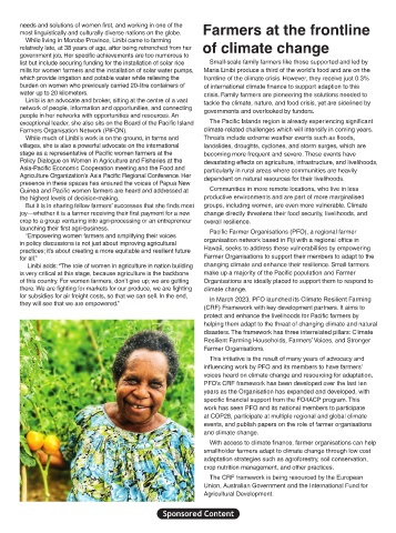 Linibi is the recipient of the 2024 Farmers Organisation Network (PIFON). climate-related challenges which will intensify in coming years.