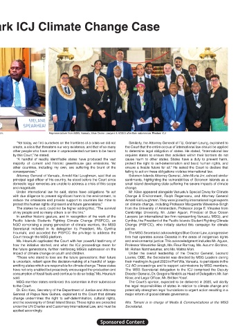 MSG’s submission to the ICJ focused on climate change and from colonial rule less than 50 years ago. However, climate change is Secretariat included in its delegation its President, Ms. Cynthia justice.