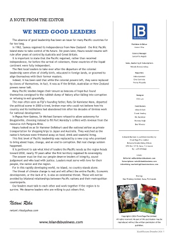 This first level of Pacific leadership was replaced by a new crop who promised IsIslands Business is published monthly by