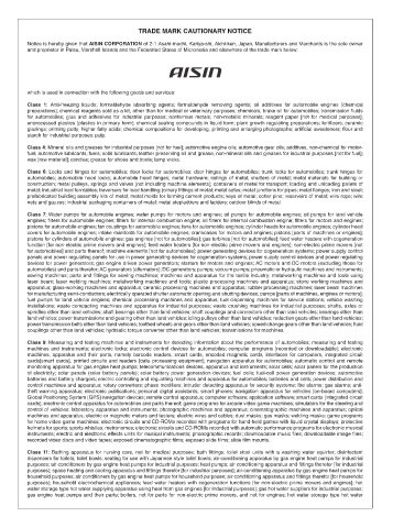 Notice is hereby given that AISIN CORPORATION of 2-1 Asahi-machi, Kariya-shi, Aichi-ken, Japan, Manufacturers and Merchants is the sole owner