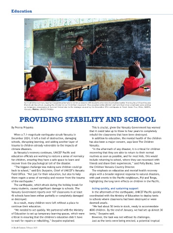 back to school,” said Eric Durpaire, Chief of UNICEF’s Vanuatu The emphasis on education and mental health recovery