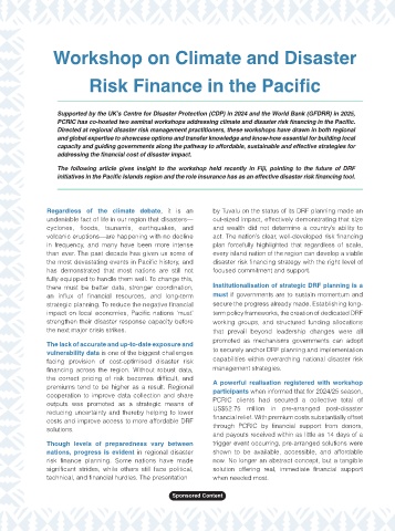 Risk Finance in the Pacific resources. Critical questions were raised as to who disasters are no longer just a ‘nice-to-have’