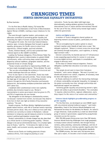 advocates committed to promoting gender equality and A member of Tuvalu’s delegation shared updates on