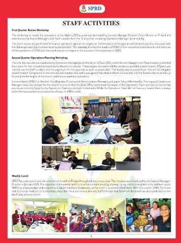 SPBD Fiji continued to provide lunch for all its staff on Fridays throughout the June quarter. The initiative was introduced by the General Manager/