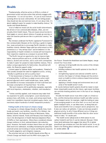 healthier choices. Minister Taape said law enforcement on NCD