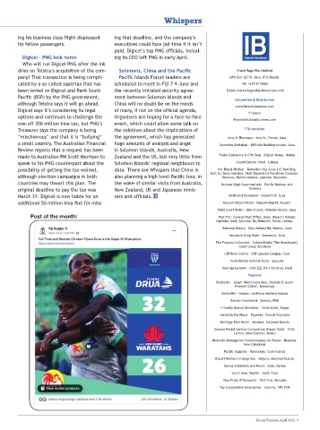 Pacific (BSP) by the PNG government, ment between Solomon Islands and Circulation & Distribution