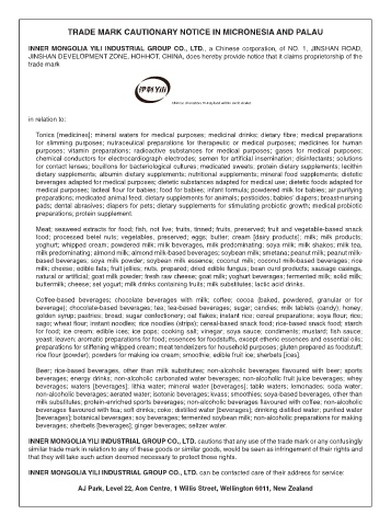 INNER MONGOLIA YILI INDUSTRIAL GROUP CO., LTD. cautions that any use of the trade mark or any confusingly