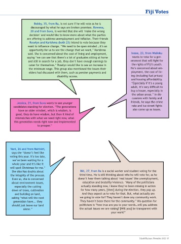 cater for themselves.” Roselyn would like to see an increase in the rights of Fiji’s youth.