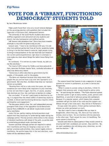 Under Fiji law, parties making electoral promises must Bougainville, where they say, ‘Oh, there are four seats for