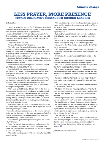 cheerful giving to the church. Tuvalu’s Director of Climate Change and Disaster Manage-