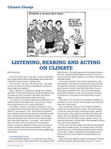 Today, “listening” is a bipartisan message from Canberra. Rarotonga in September 1997, it was clear that Australia