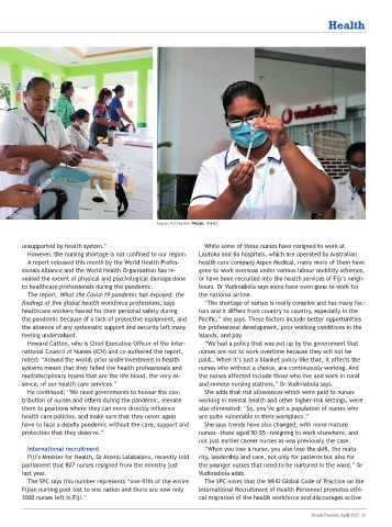 3000 nurses left in Fiji.” cal migration of the health workforce and discourages active