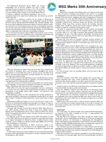 substantially from its low-key inception way back in 1988, MSG Marks 35th Anniversary: Melanesia, Storian blo Yumi Being the only subregion whose Leaders have signed and adopted the