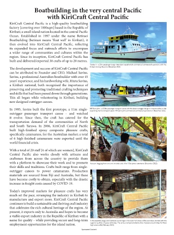 In 1985, Savins built the first prototype, a 11m single- MV Saint John - a 12.8m passenger transport canoe with the latest outrigger design to improve safety in this to Brisbane - 2023. • High-quality