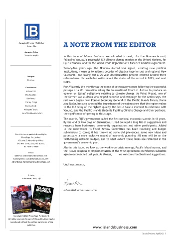 Editorial: editor@islandsbusiness.com agreement reached last year. As always, we welcome feedback and suggestions.
